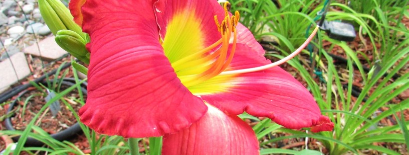 Today the rain came. Not much rain . . . but enough to wet the soil and put some drops on the peddles of my bloomers. It was cool, I worked in daylily labels. I decided to put the same metal labels i have in the Southwest garden in all my daylilies. I have too many, I gotta tell you. Anyway, I ended up short labels for every daylily, so need to reorder. My plastic labels did not hold up for year 3 – and I rearranged some of the plants in the walkway garden. So, I have a few I won’t be sure of until the blooms come. But, progress.