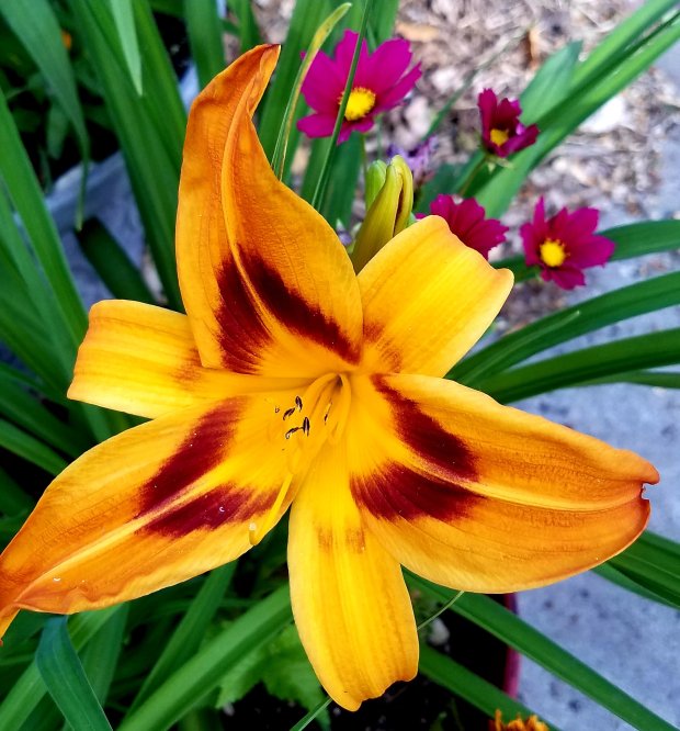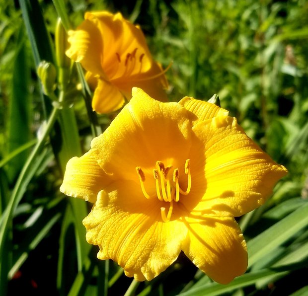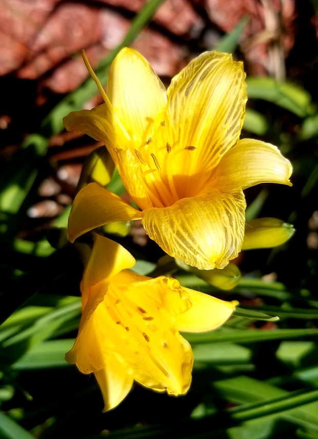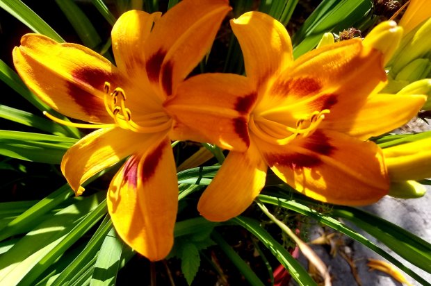 The contrast seems odd. Last year we had the exceptional drought. Blooms were early because of the warm, dry winter. I winter watered my daylilies once a month. Some buds dried up before they opened.