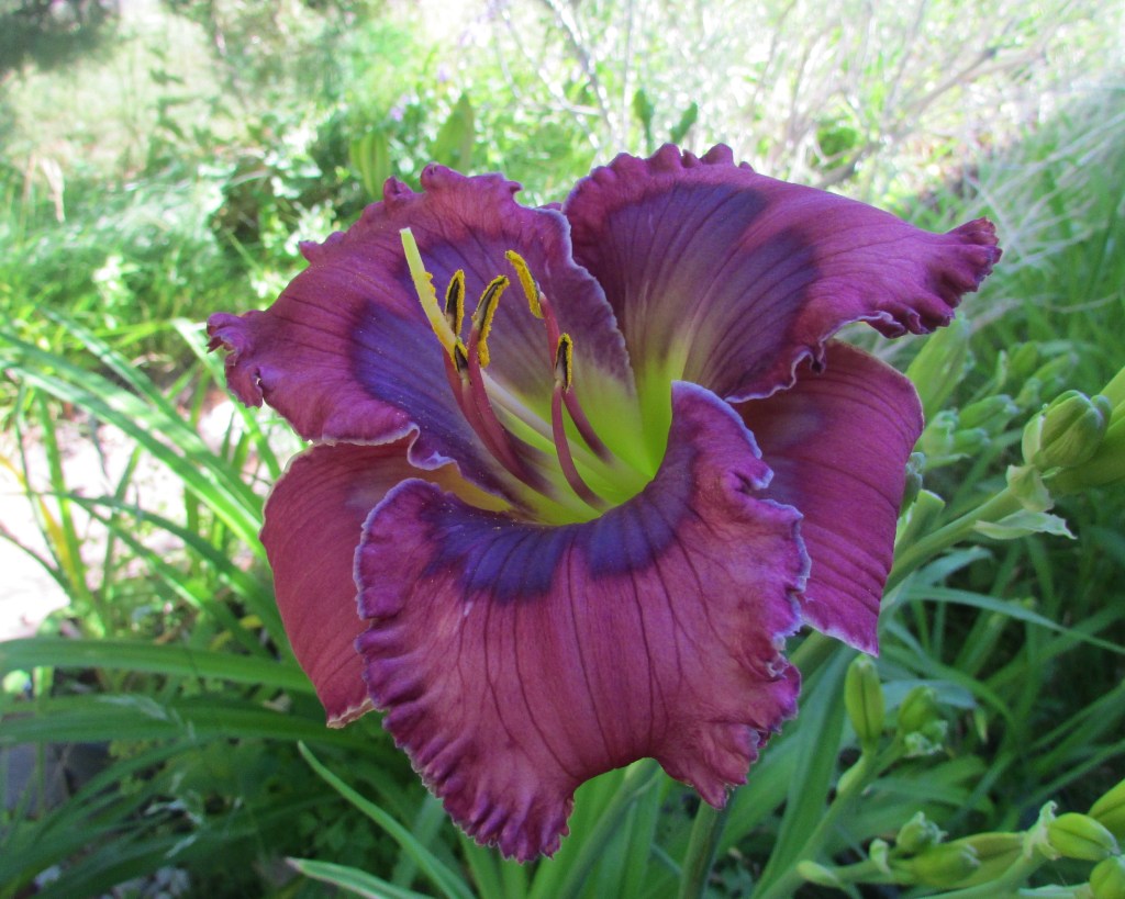 The other reason I picked her is that she is near blue. I was absolutely infatuated with near-blues when I first discovered that daylilies didn’t come in blue. I guess we want what we can’t have. At any rate, her color is best before the sun hits her – she is on the north side of the house. Once the light hits, her blue is decidedly purple.