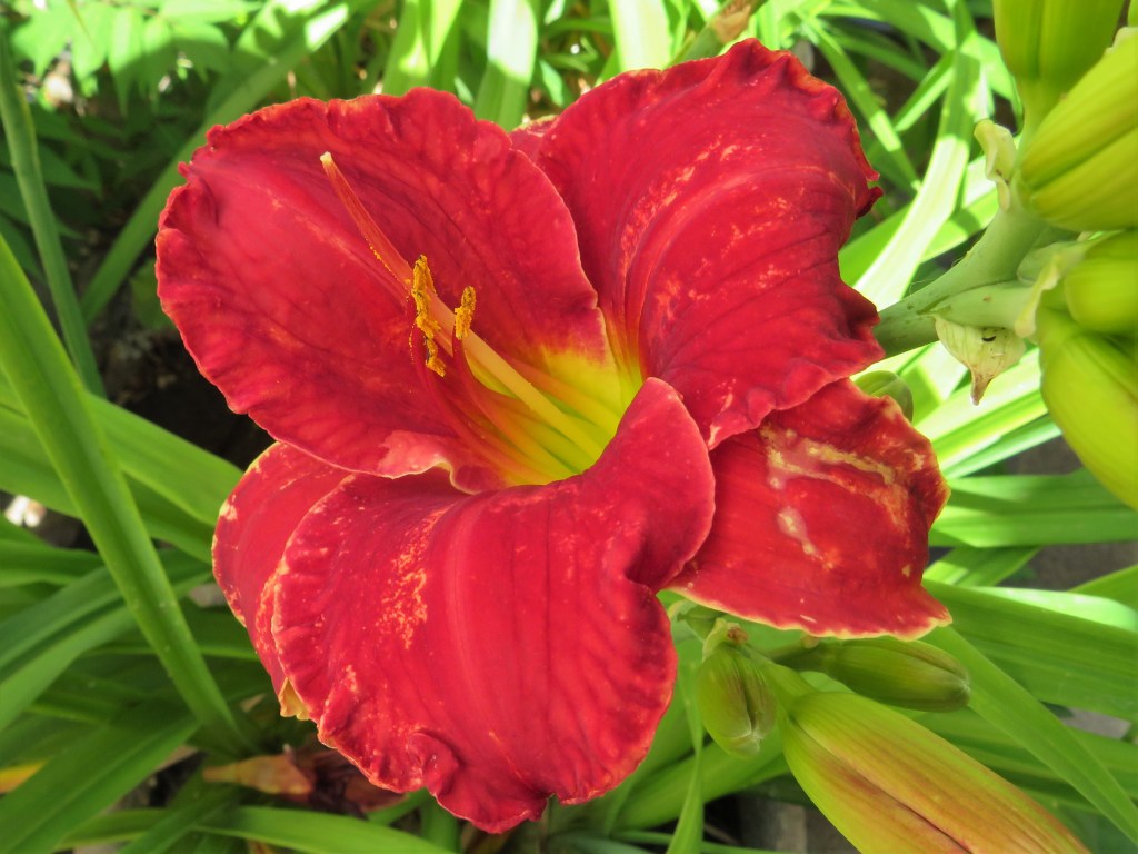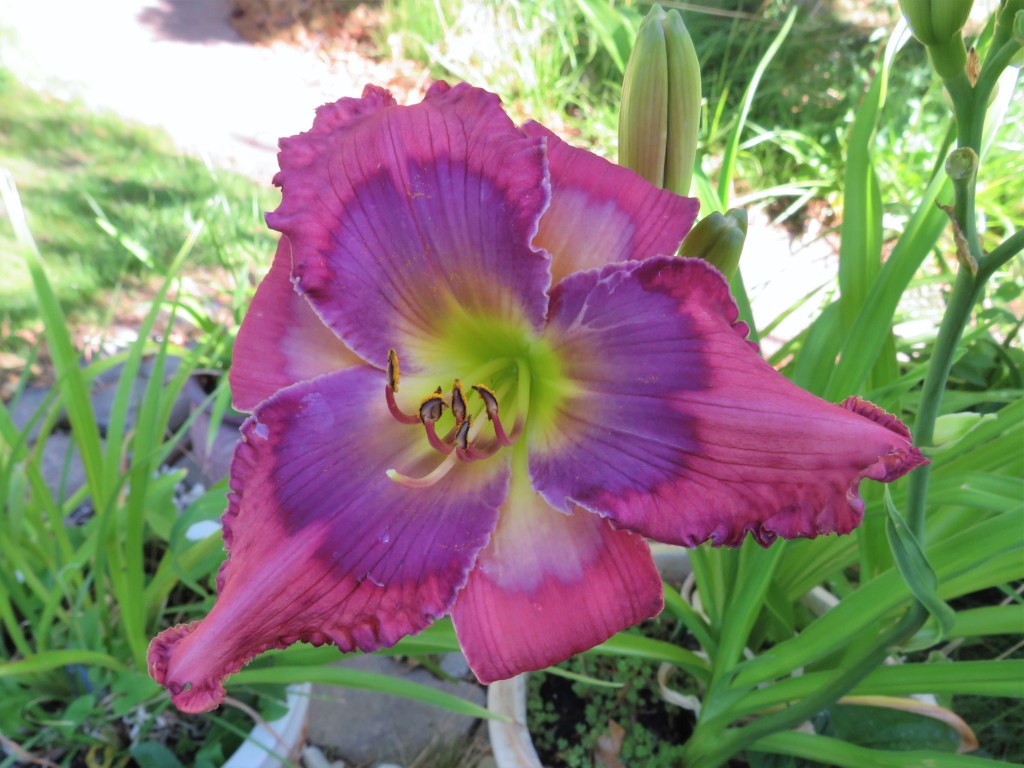My last premier is an older daylily that deserves some credit for a bit of near blue – which didn’t happen much during the time she was hybridized. Prairie Blue Eyes opened her eyes for the first time in 2020 today.