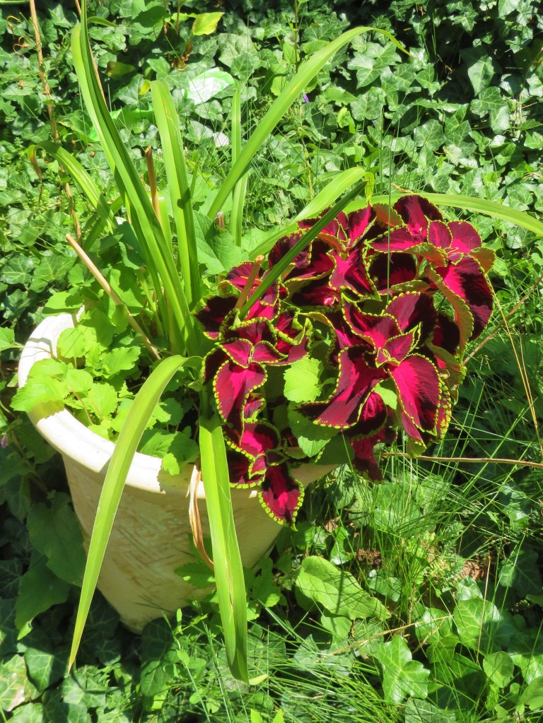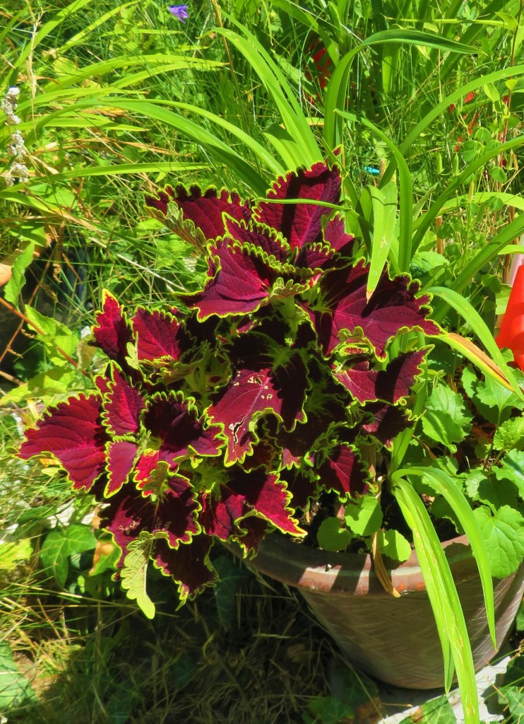 Last year, I tried an experiment of putting coleus in my boring driveway pots. They thrived so I took cuttings before freeze and replanted the new plants this spring. And, I added more – thinking I might be able to sell them. Well, they haven’t been too popular for sales (probably too late in the season). I also added some new ones to my daylily pots earlier.