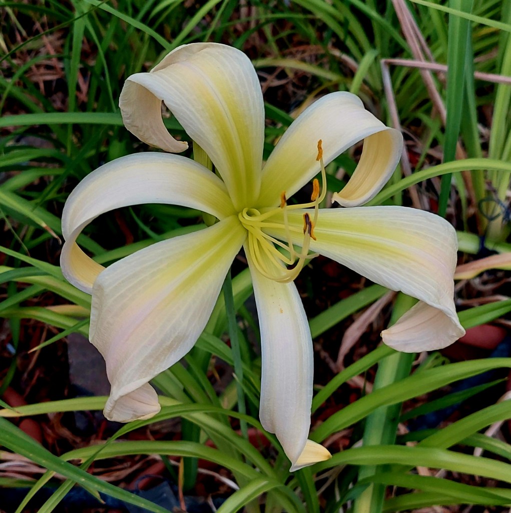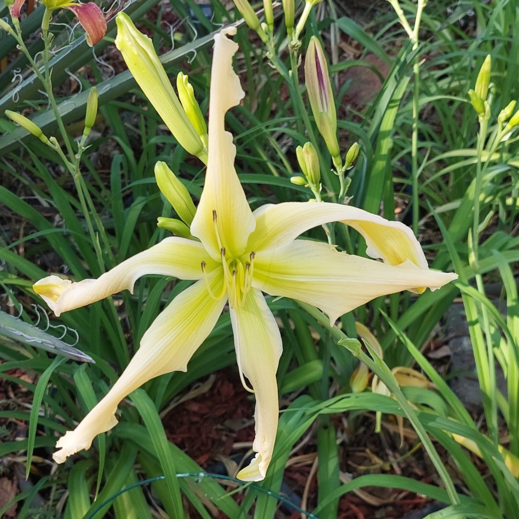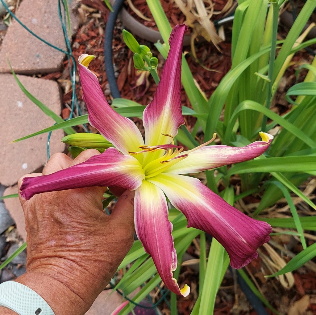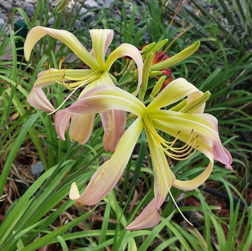 Since returning, I had 1 bloom on September 1st. I have no scapes. This year will either end early or late. We will wait and see. But as of right now, Navajo Curls is my latest bloom for 2024. The scape got broken in the monsoon a few days before, but bloomed she did.