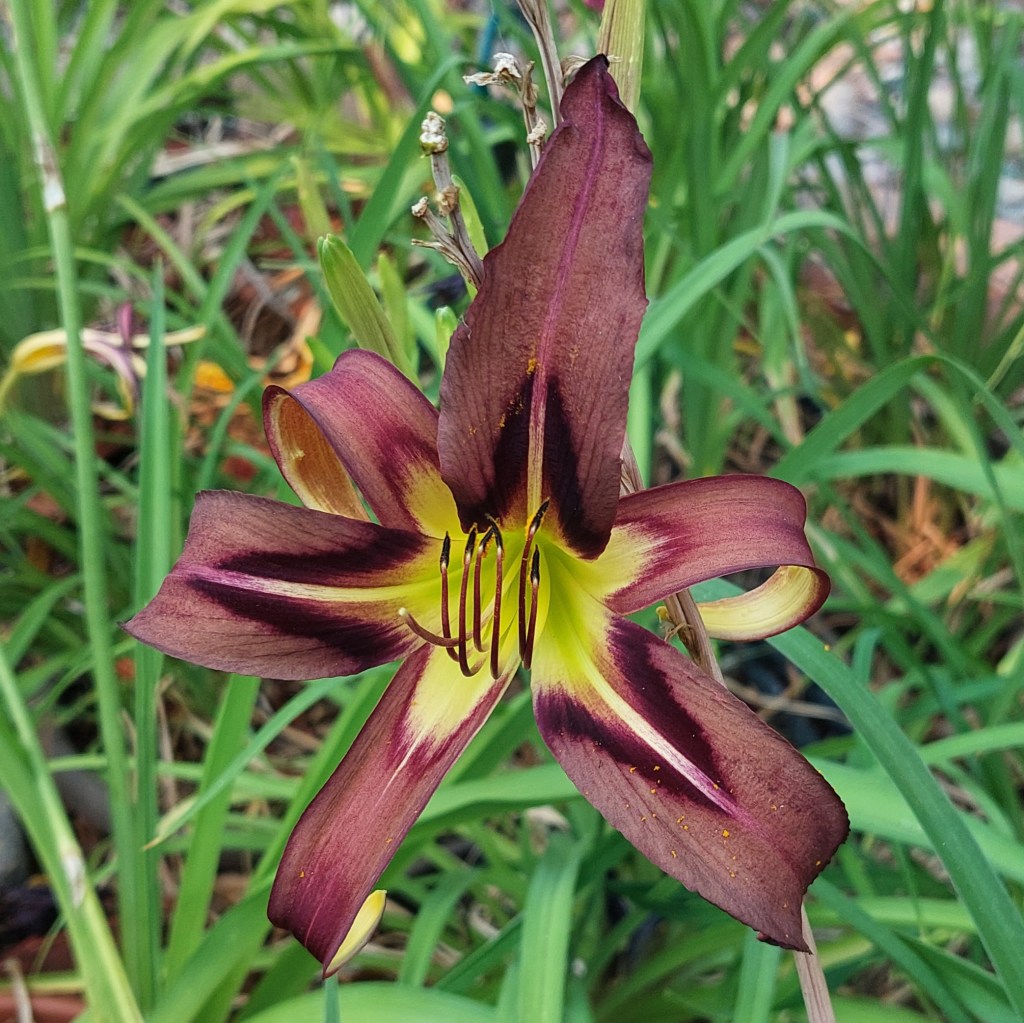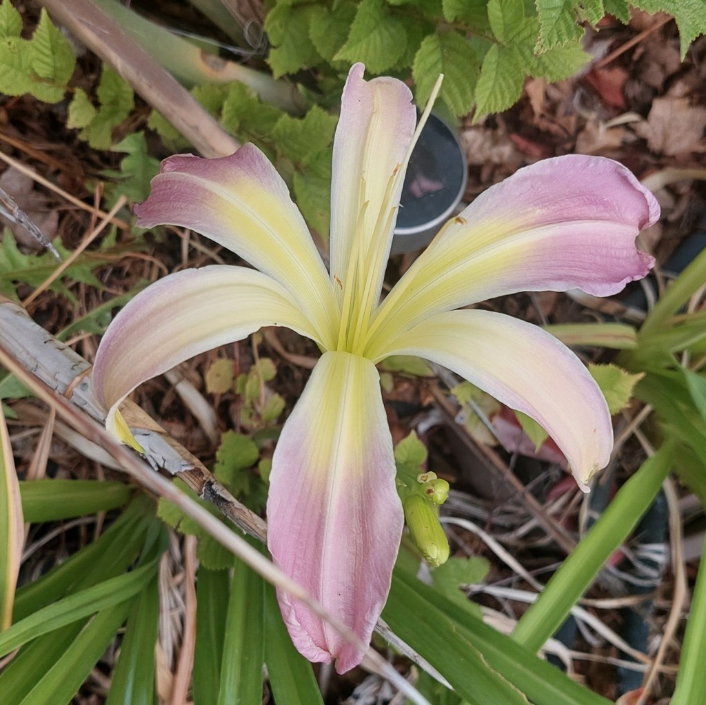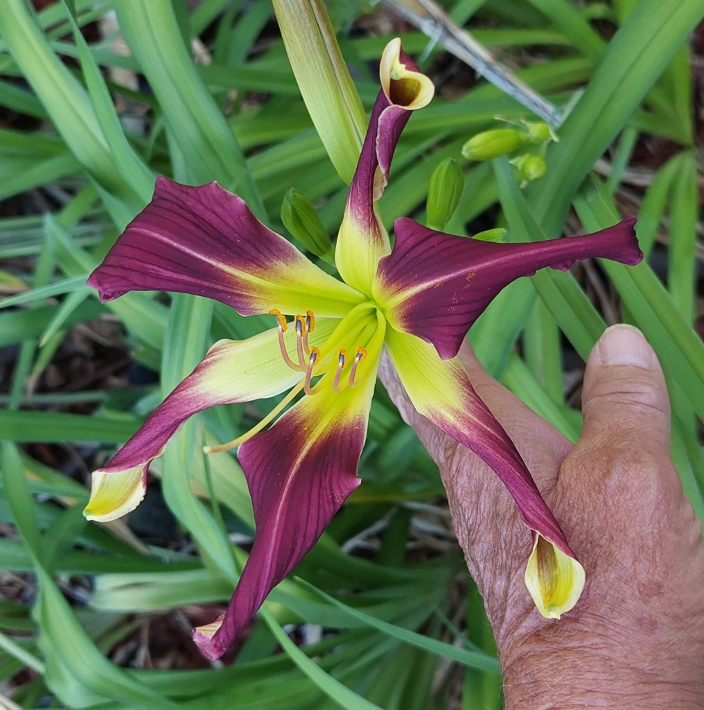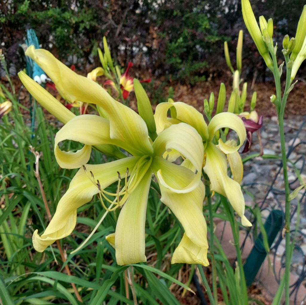 Since returning, I had 1 bloom on September 1st. I have no scapes. This year will either end early or late. We will wait and see. But as of right now, Navajo Curls is my latest bloom for 2024. The scape got broken in the monsoon a few days before, but bloomed she did.