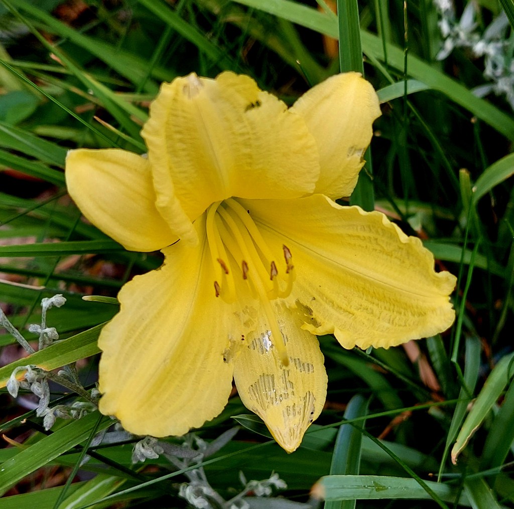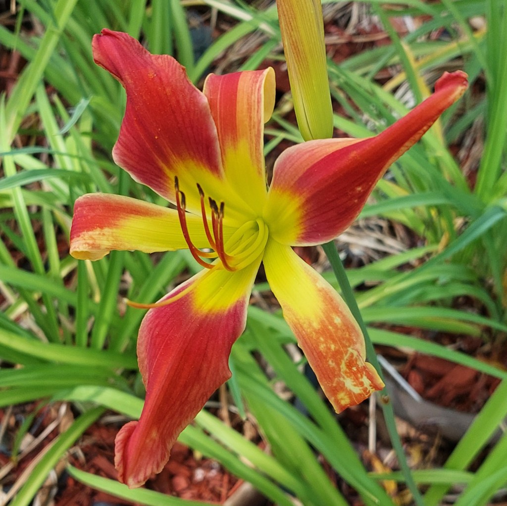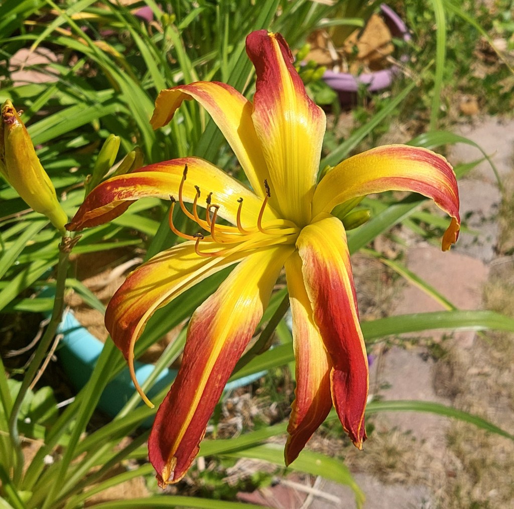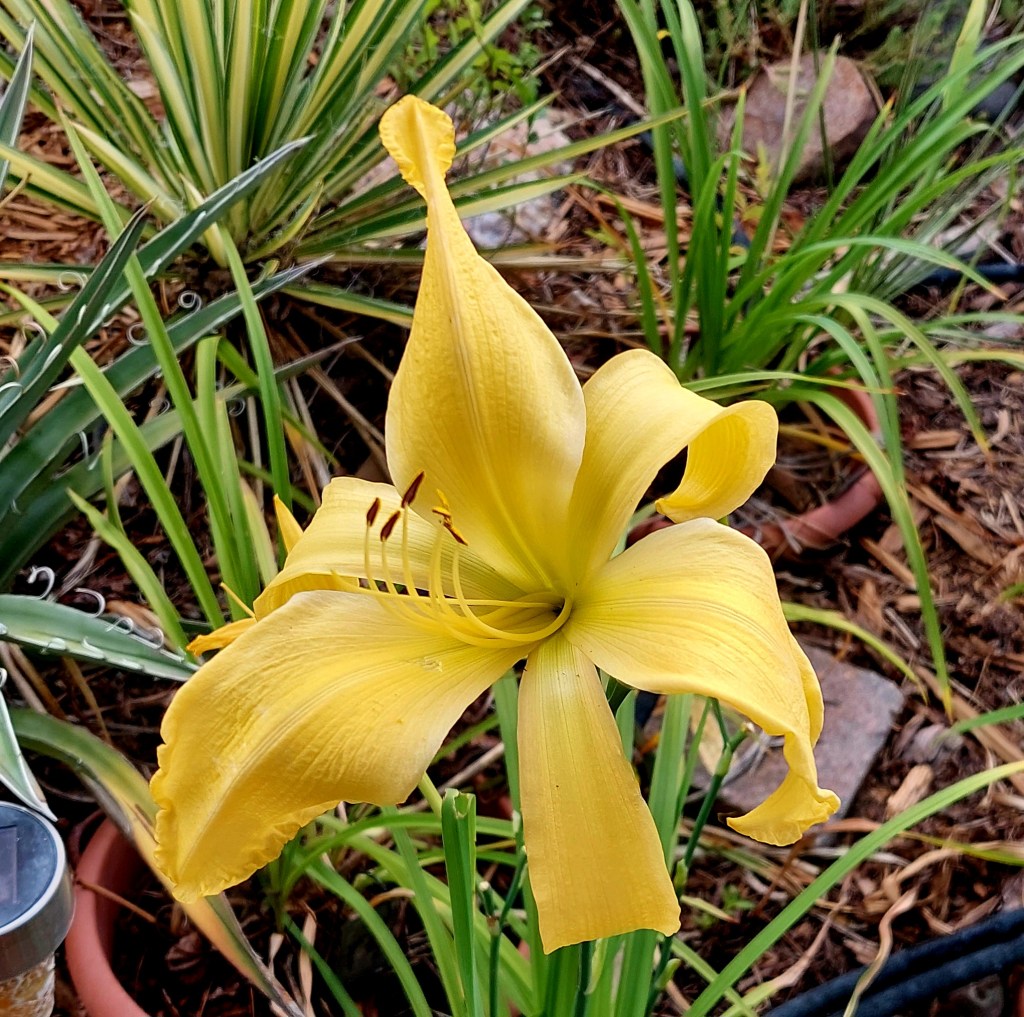 Since returning, I had 1 bloom on September 1st. I have no scapes. This year will either end early or late. We will wait and see. But as of right now, Navajo Curls is my latest bloom for 2024. The scape got broken in the monsoon a few days before, but bloomed she did.