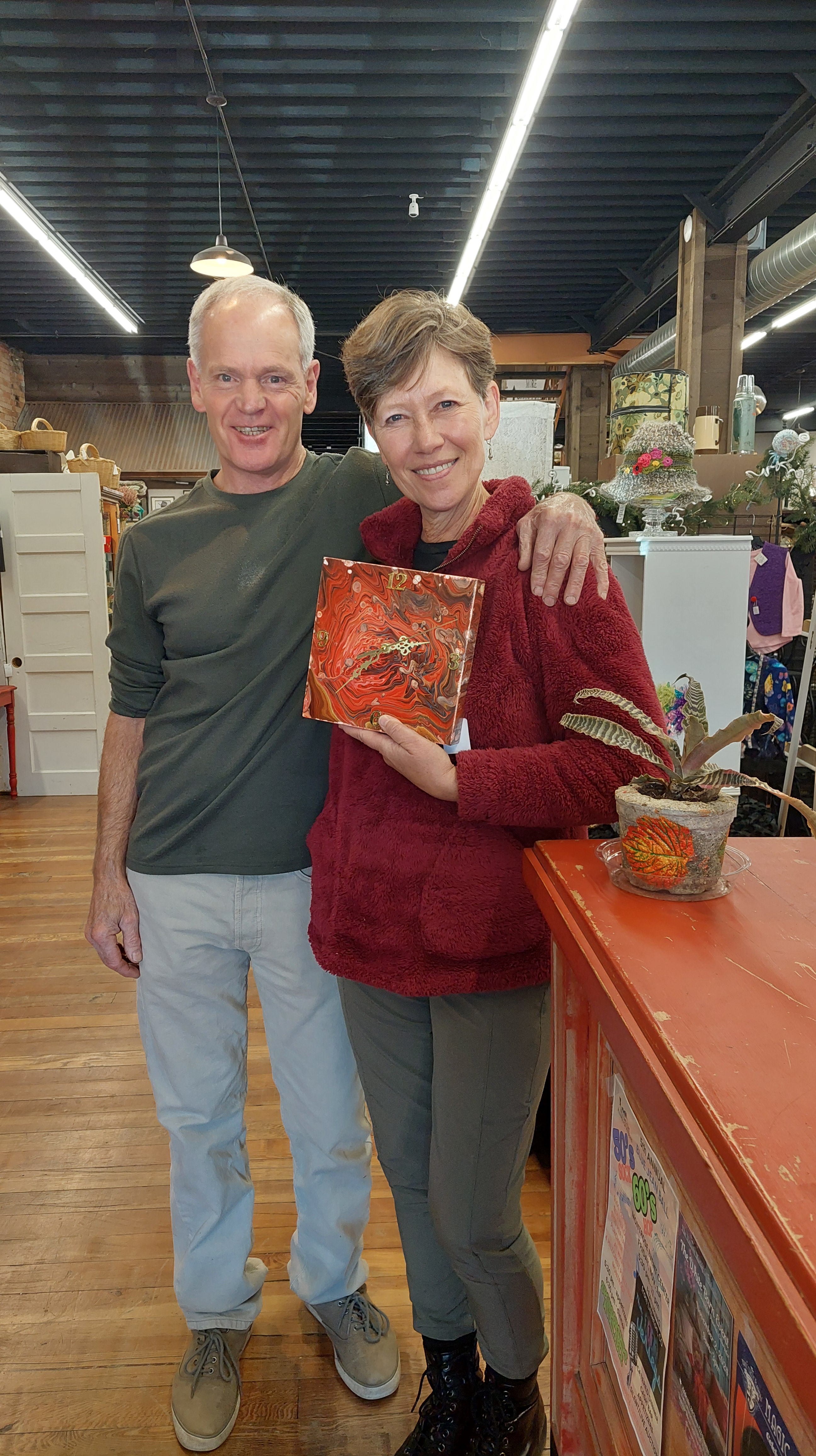In November, I met with Deanna at my booth at Country Flair to give her the clock. She picked one of my favorite pour-paint clocks for her friend! If you like this style of clock, I have several available at my Etsy, Shopify, and GoImagine shop and at Country Flair! Please check it out!