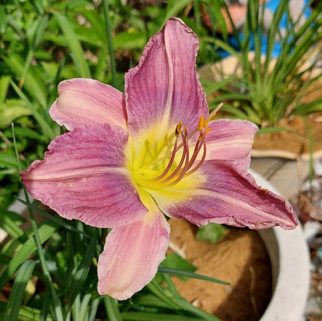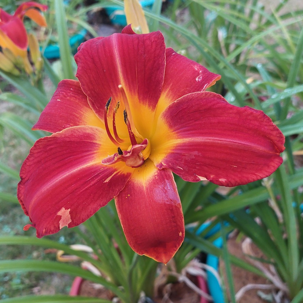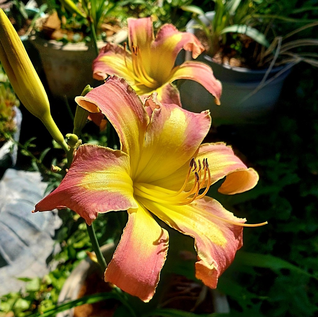 I have had a total of 139 cultivators bloom this season (out of around 190). That is a 73% bloom rate. Last year, we only got to the mid-sixties, so I am thrilled. And, the season isn’t over. In the high desert, 80% is a huge win. I need to fertilize, but without the monsoon moisture and cooler temps, I am waiting until next month. With daylilies in pots, I find applying liquid fertilizer improves bloom rate for the following year because the plant is more resilient.
