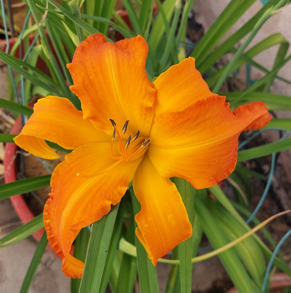 I put my two new OZ daylilies in the squash pots and my two new Ned Roberts daylilies in the large multi-species pots I have out front. I want to get covers for the tops of the pots that are not buried this year.