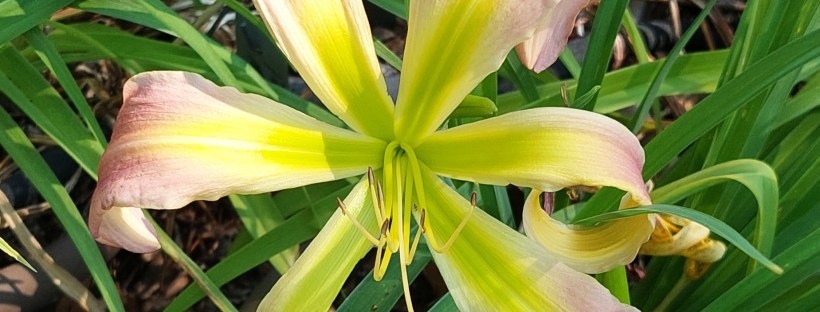 Since returning, I had 1 bloom on September 1st. I have no scapes. This year will either end early or late. We will wait and see. But as of right now, Navajo Curls is my latest bloom for 2024. The scape got broken in the monsoon a few days before, but bloomed she did.