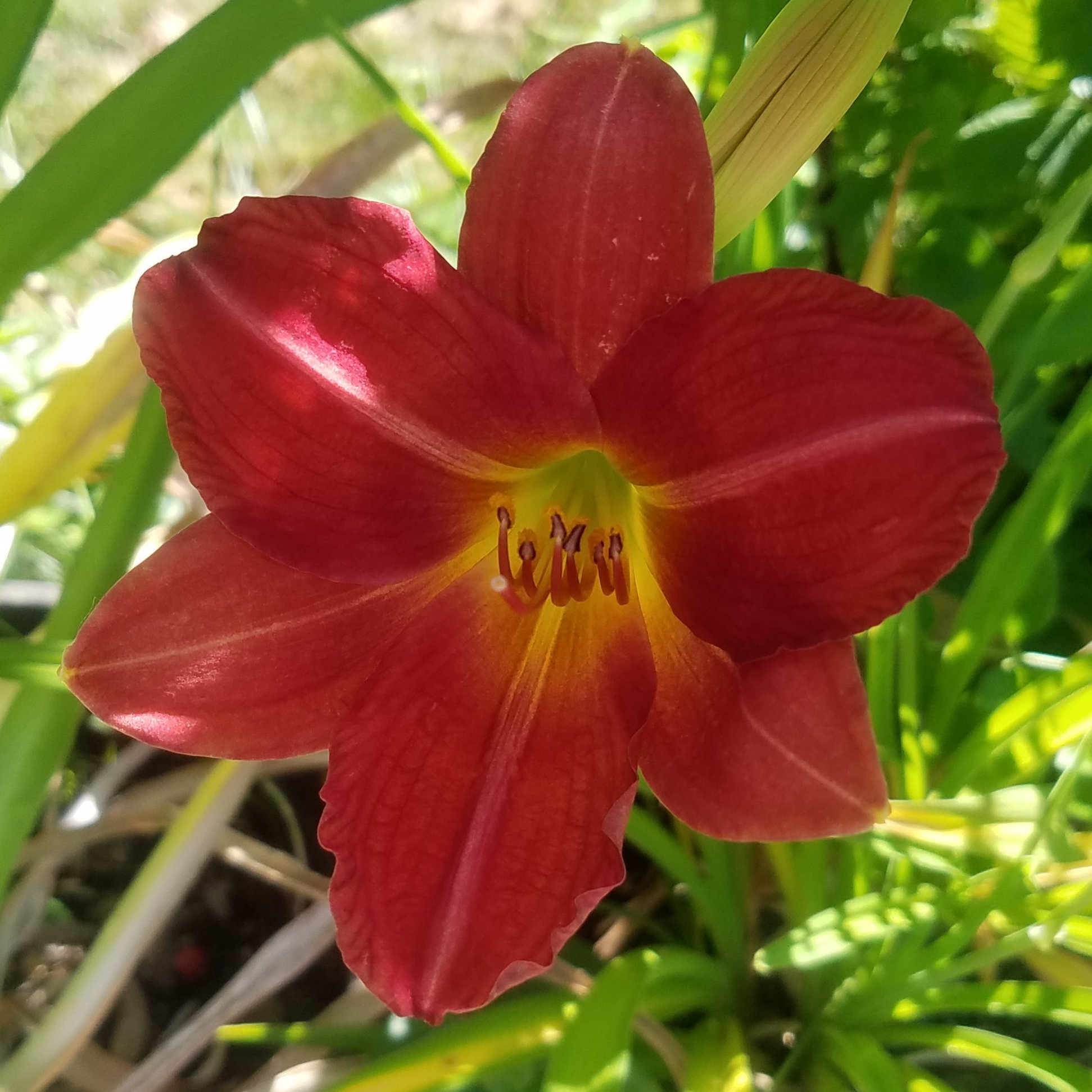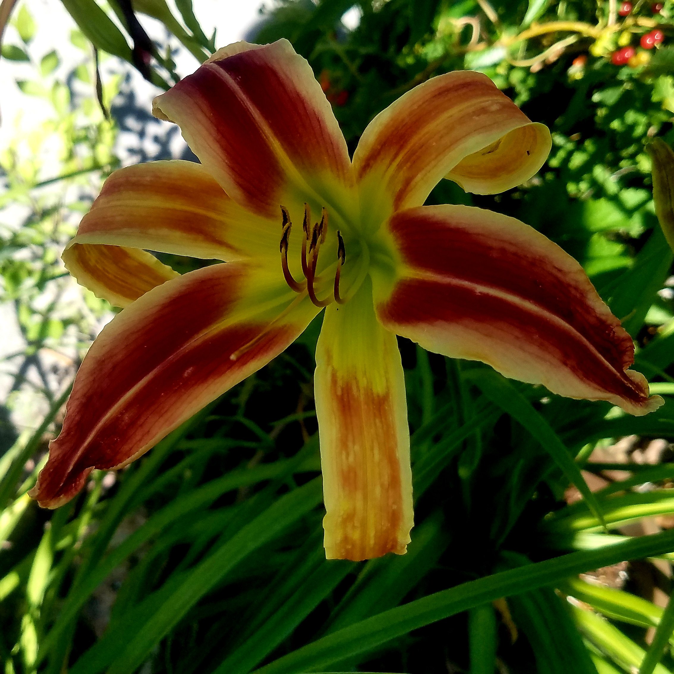 So, today I had some colorful premier blooms. First, Funny Valentine. She is an older daylily that I keep on my porch. She budded at the same time as Saratoga Springtime, so I have been waiting for her appearance on stage.