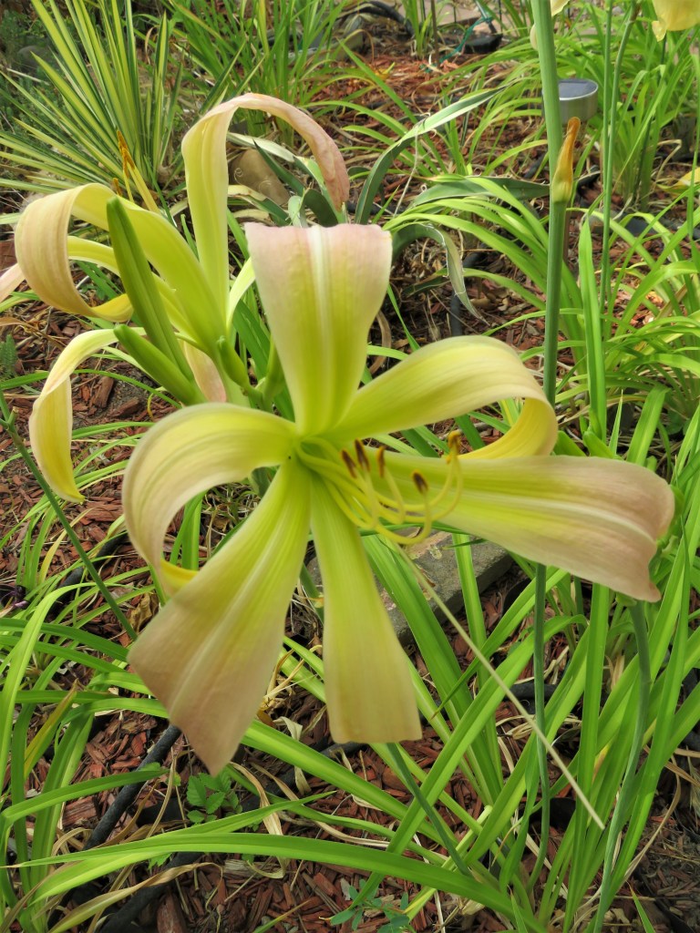 I was new as a daylily collector back then and didn’t know much about how online growers worked. But, I quickly figured out enough to add Aztec Firebird and Dream Catcher to my pilot garden. It worked great having them out with the yucca as long as I watered enough.