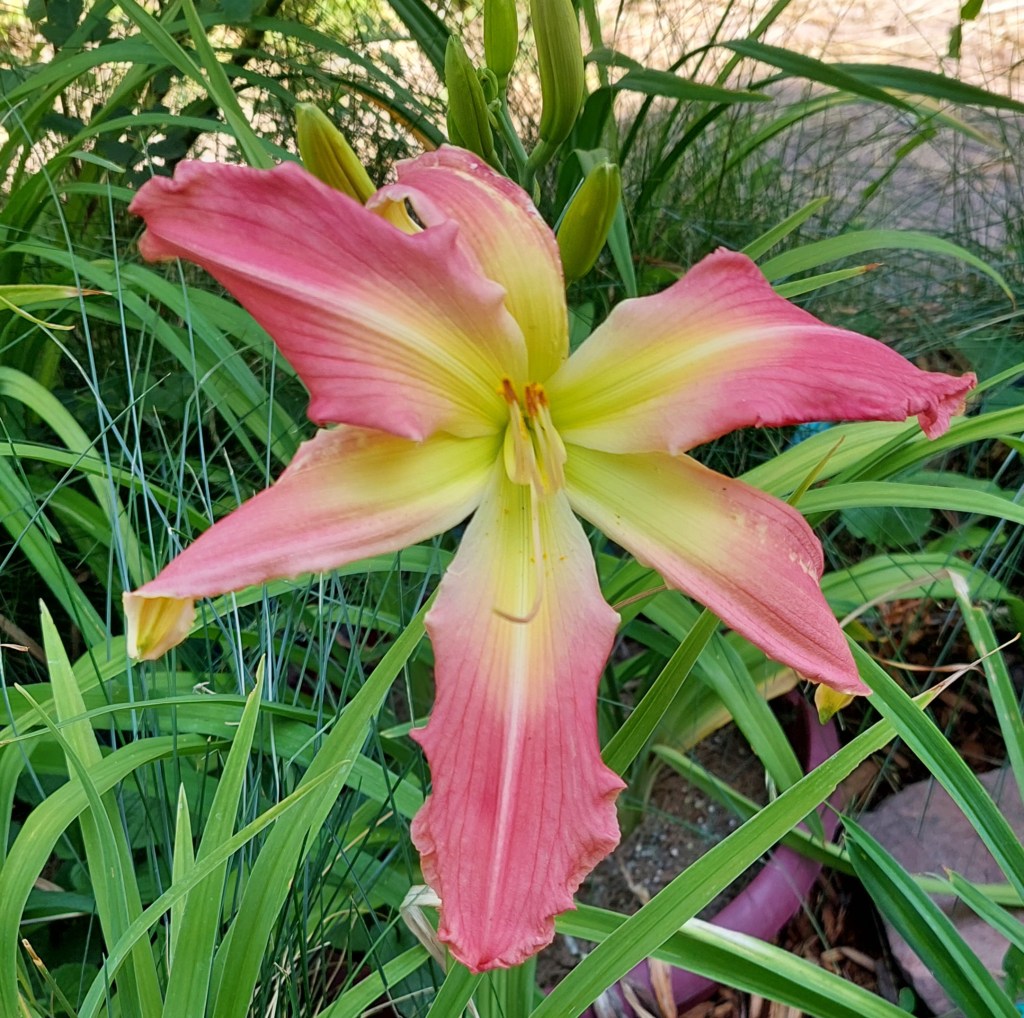 I have had a total of 139 cultivators bloom this season (out of around 190). That is a 73% bloom rate. Last year, we only got to the mid-sixties, so I am thrilled. And, the season isn’t over. In the high desert, 80% is a huge win. I need to fertilize, but without the monsoon moisture and cooler temps, I am waiting until next month. With daylilies in pots, I find applying liquid fertilizer improves bloom rate for the following year because the plant is more resilient.