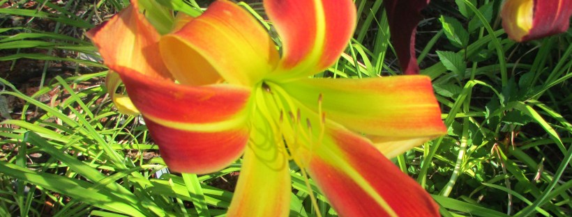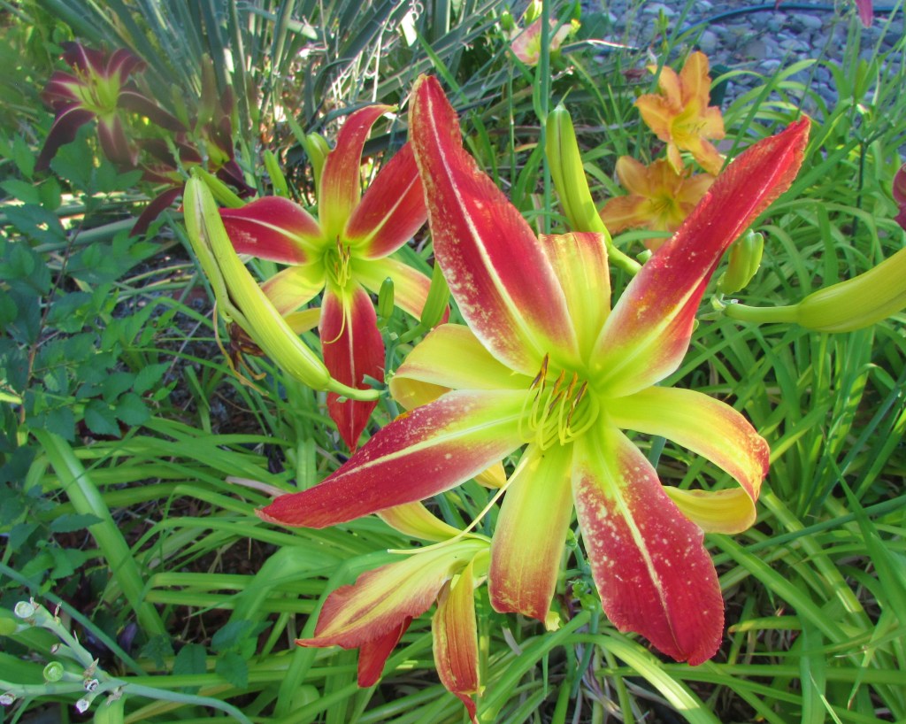 So, when I happened to see a daylily named Chaco Canyon – just after I discovered one named Kokopelli (and by the same hybridizer, Ned Roberts), I ordered it instantly.  Not only did I like the name – It is a striking daylily.   I wonder what about this daylily reminded Ned of Chaco Canyon – maybe the red color?  Maybe because it blooms around summer solstice?  Maybe because it looks like the sun or the stars?