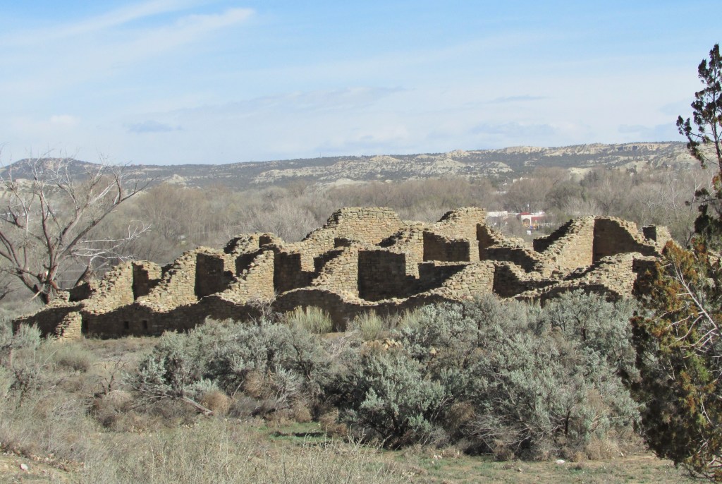 The walls of the Chaco ruins blend into the background of the canyon walls