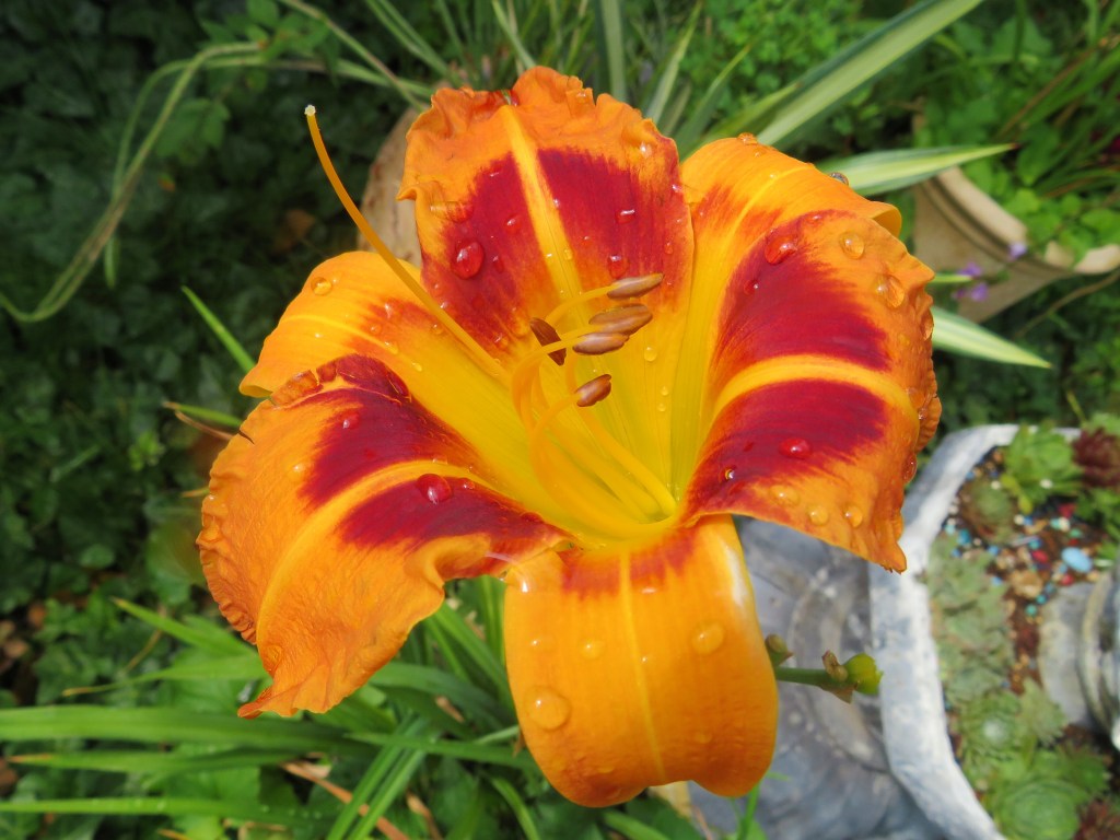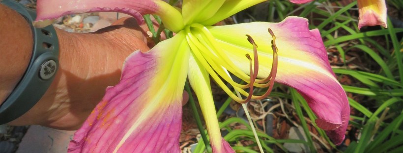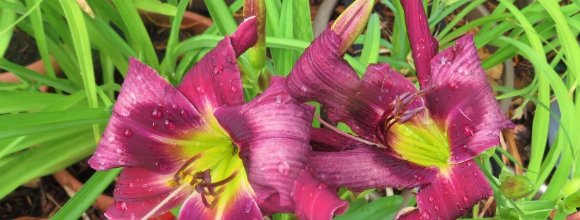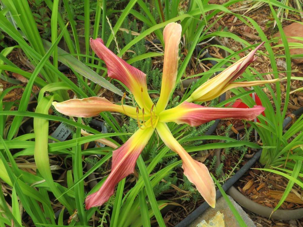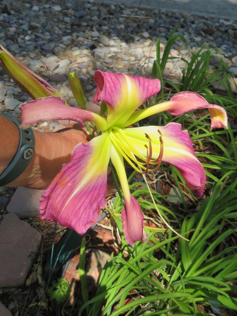 I have had a total of 139 cultivators bloom this season (out of around 190). That is a 73% bloom rate. Last year, we only got to the mid-sixties, so I am thrilled. And, the season isn’t over. In the high desert, 80% is a huge win. I need to fertilize, but without the monsoon moisture and cooler temps, I am waiting until next month. With daylilies in pots, I find applying liquid fertilizer improves bloom rate for the following year because the plant is more resilient.