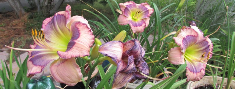 Oh, daylilies. I was so clueless when I began collecting these circa 7-8 years ago that I did dumb stuff with them. I stuck them in shade with no water. I stuck them in the hard, clay soil. I put them in pots with no water source except when I remembered the watering can. It never rains here.