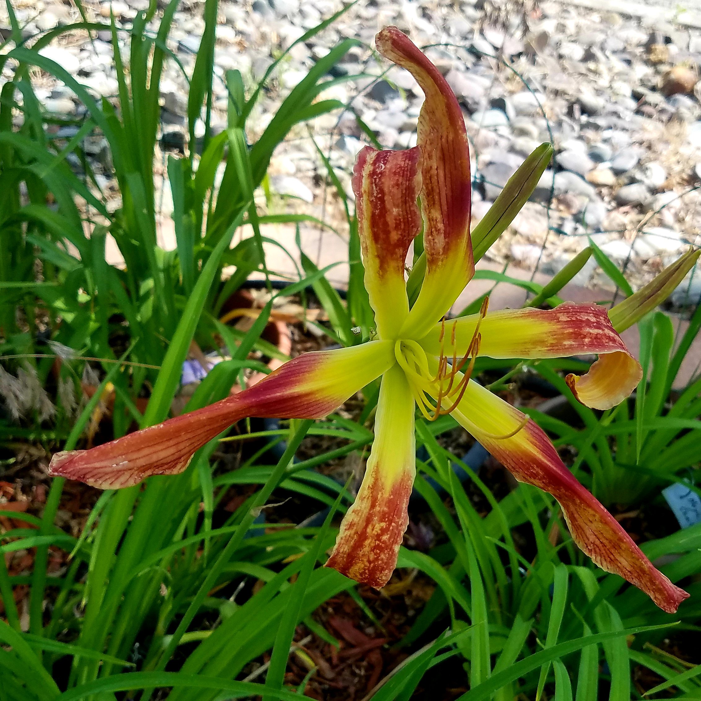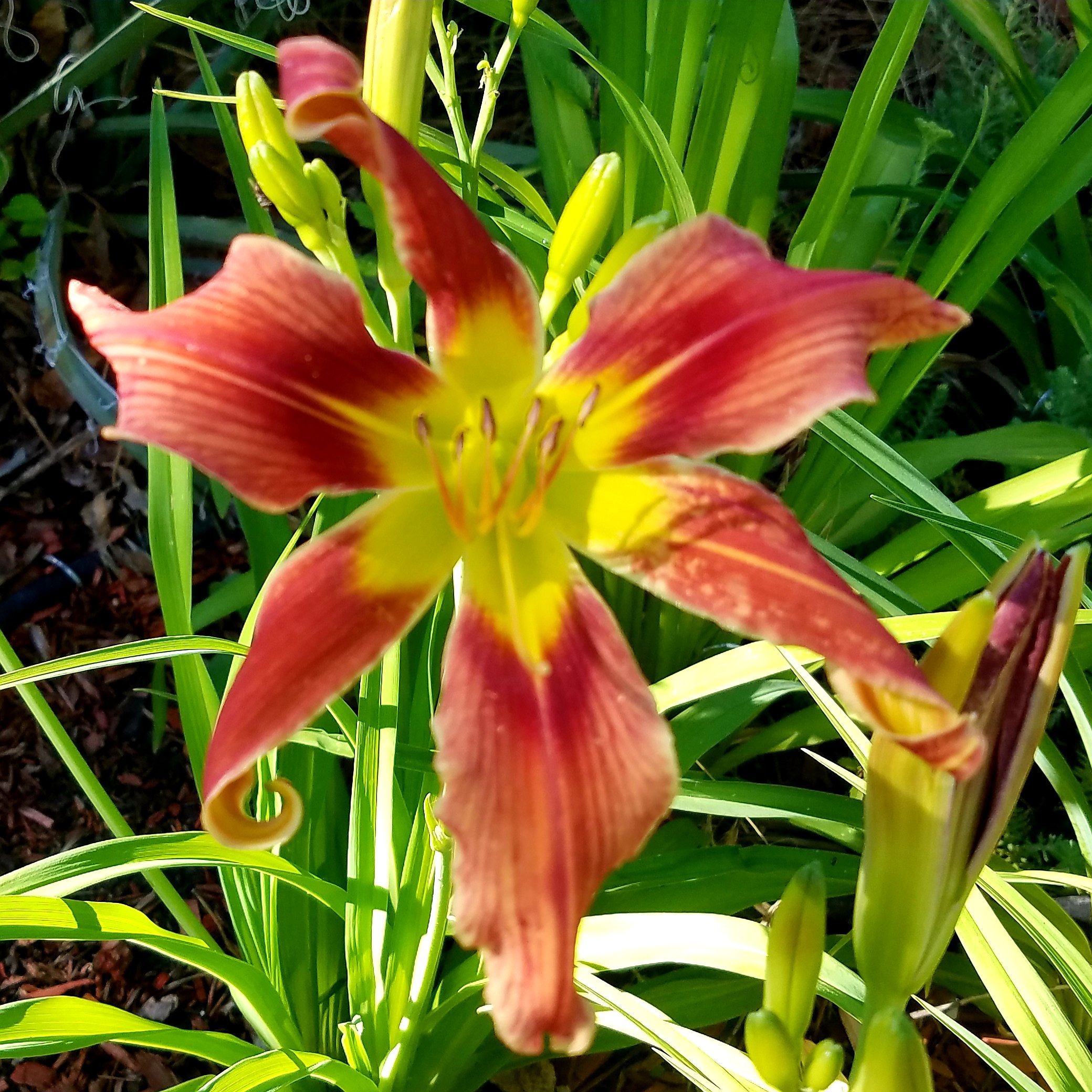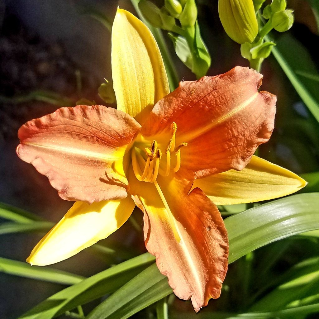 And, oh poor Kokopelli. This cultivator’s name comes from the Native American legend of a traveler, trader, and turner of seasons. I knew something was up with her bud. Maybe wind damage, maybe insects. IDK, but I hope the other buds do a little better. Kokopelli is such a favorite that this poor bloom makes me sad.