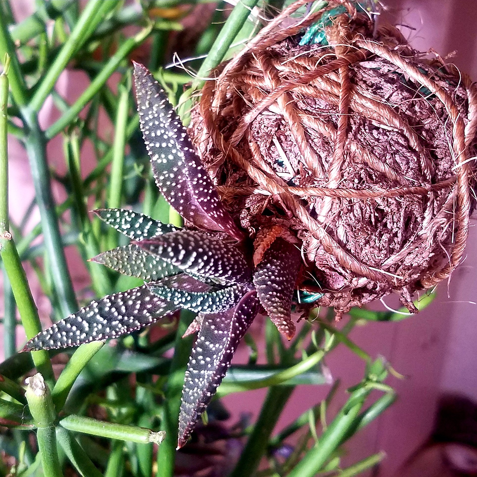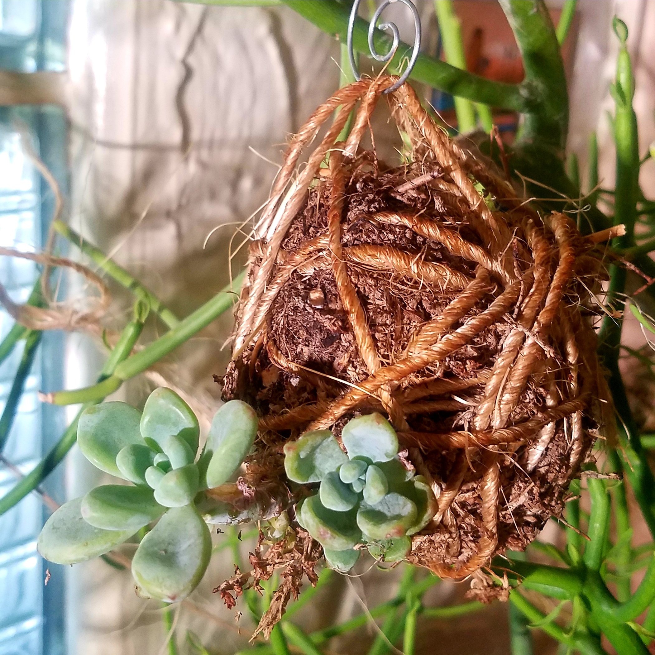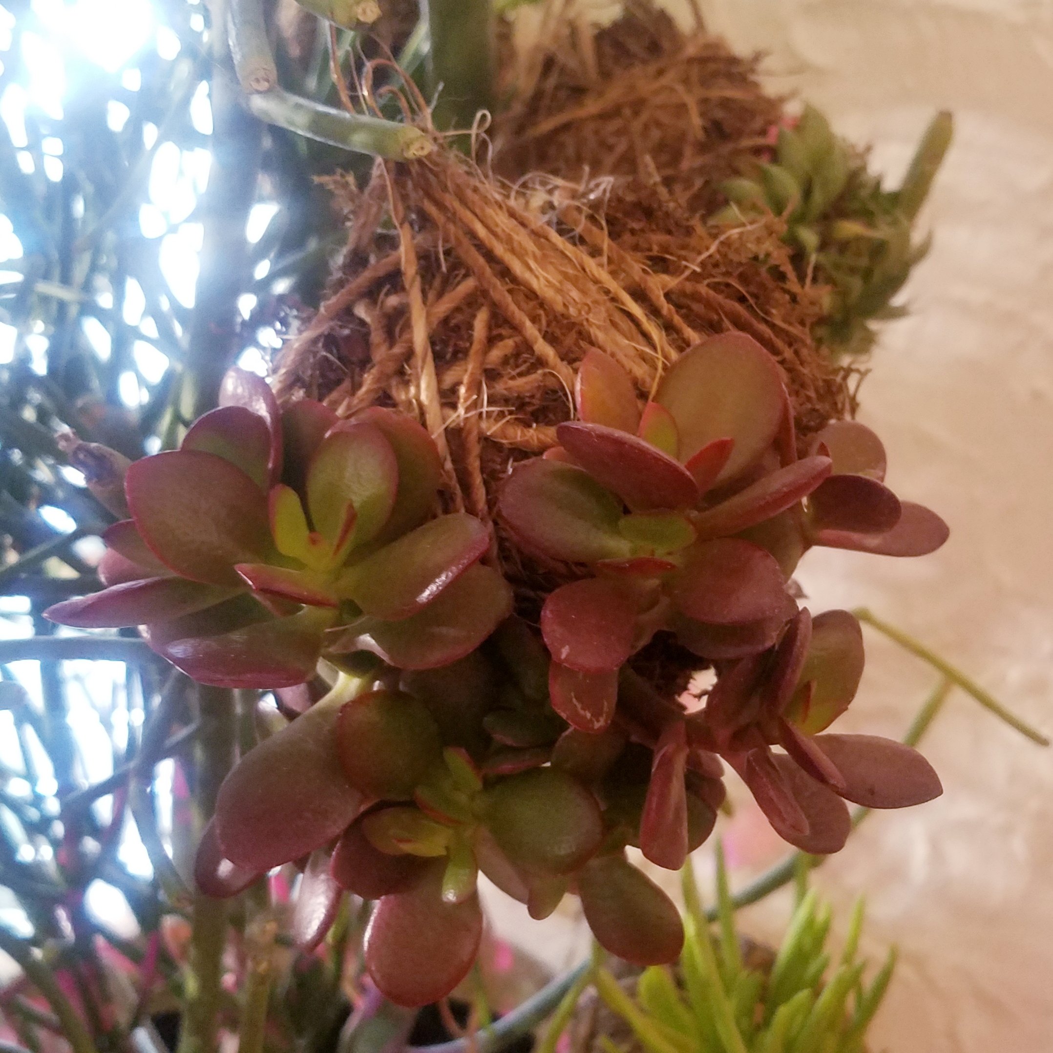 My kokedama tree spent the summer outside on the porch. Most of the original succulents had to be replaced once or twice before spring. I would call it trial and error growing them into kokedama during the winter.