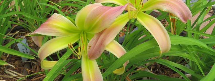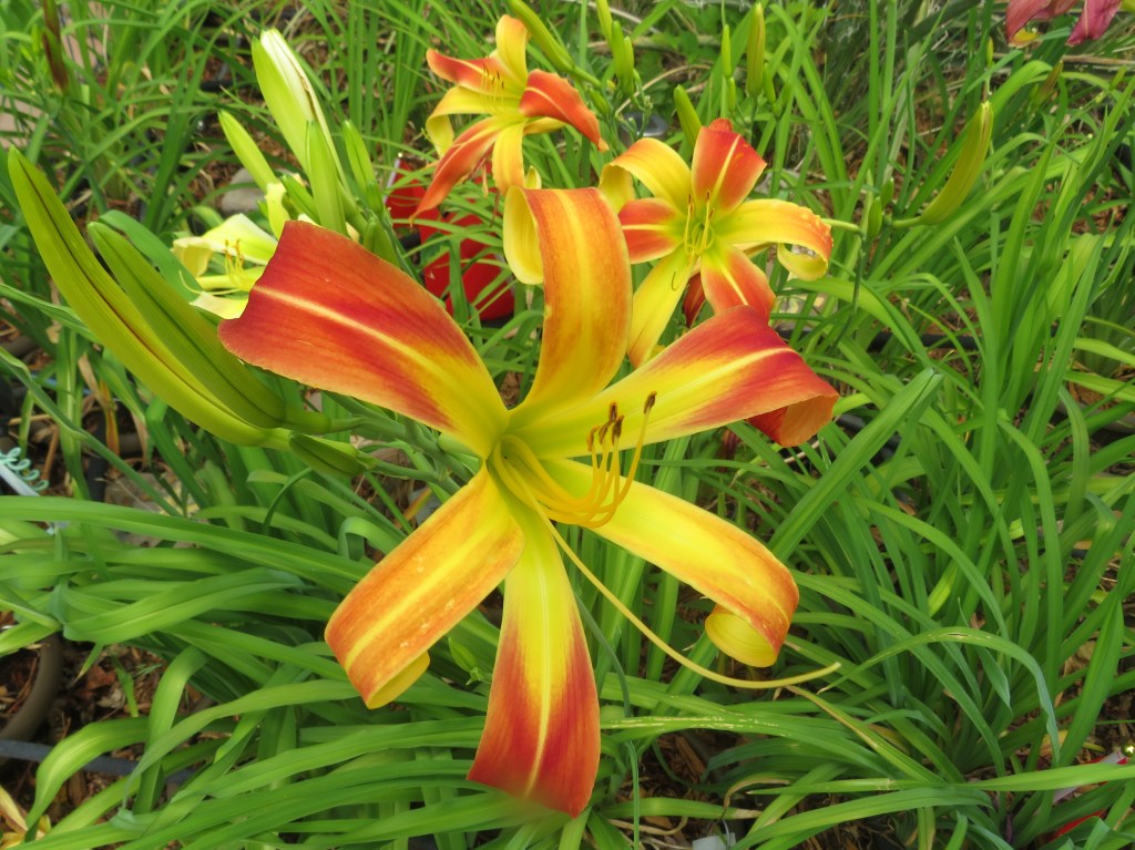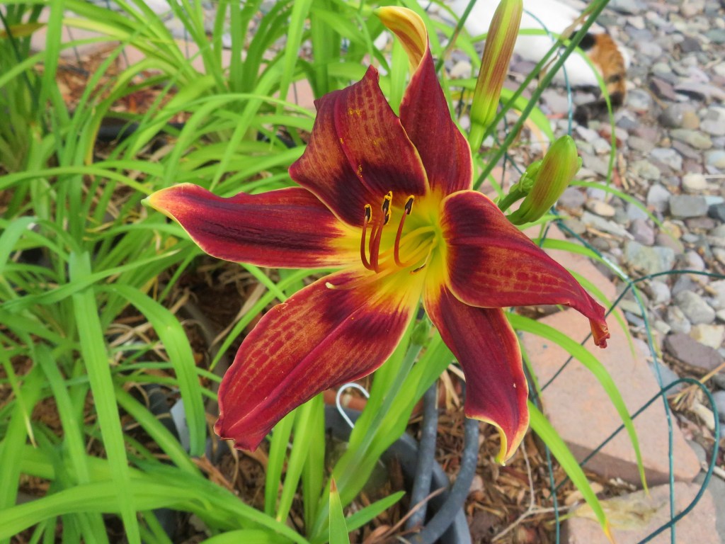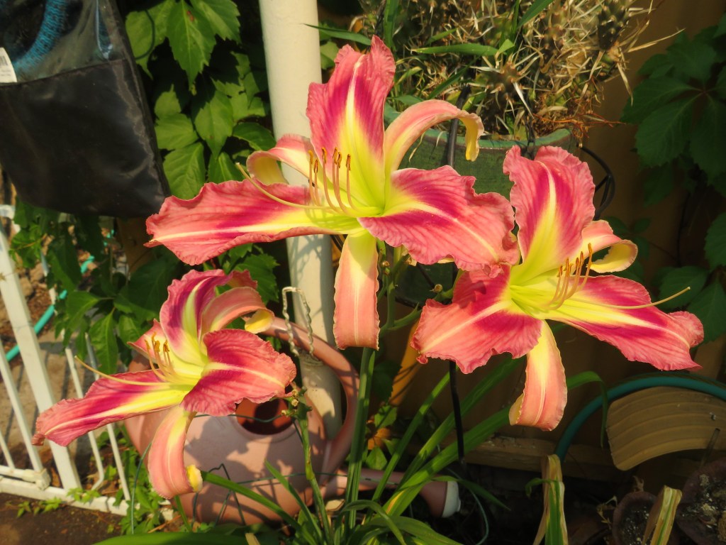 I have had a total of 139 cultivators bloom this season (out of around 190). That is a 73% bloom rate. Last year, we only got to the mid-sixties, so I am thrilled. And, the season isn’t over. In the high desert, 80% is a huge win. I need to fertilize, but without the monsoon moisture and cooler temps, I am waiting until next month. With daylilies in pots, I find applying liquid fertilizer improves bloom rate for the following year because the plant is more resilient.