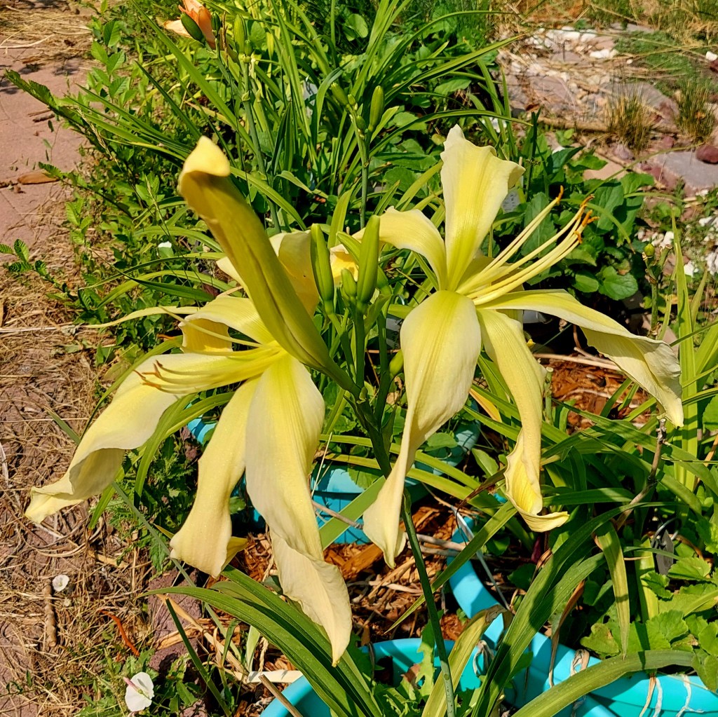 I have had a total of 139 cultivators bloom this season (out of around 190). That is a 73% bloom rate. Last year, we only got to the mid-sixties, so I am thrilled. And, the season isn’t over. In the high desert, 80% is a huge win. I need to fertilize, but without the monsoon moisture and cooler temps, I am waiting until next month. With daylilies in pots, I find applying liquid fertilizer improves bloom rate for the following year because the plant is more resilient.