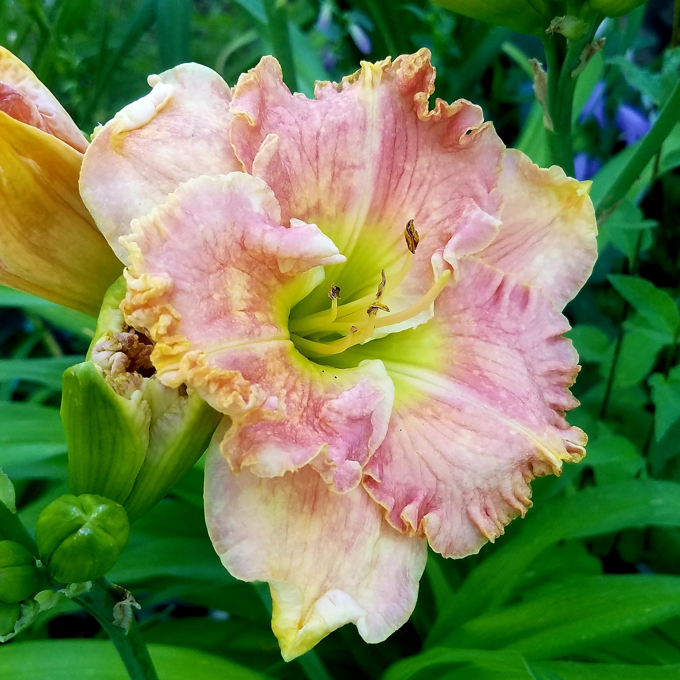 I will say that some of my buds opened funny today – Stephanie Returns and Bluegrass Music both look like they wanted to sleep in. We have had days of fire weather with highs in the 90s, wind speeds 35+ MPH, and humidity under 15% (often single digits). And, we are still in extreme drought here (although no water restrictions yet). I think the buds get dried out! I will also say that the super ruffled blooms just don’t open right in such low humidity. I stay away from super ruffles now.