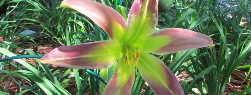 And, there were only 54 cultivators in bloom today. Only 1 premier – Dream Catcher. A nice Ned Roberts spider that was one of my 3 pilot daylilies in the Southwest Garden, along with Kokopelli and Aztec Firebird. Interestingly, those are three that grew pretty well in the ground with the tree roots, and all. Not sure if they like the pots as well yet.