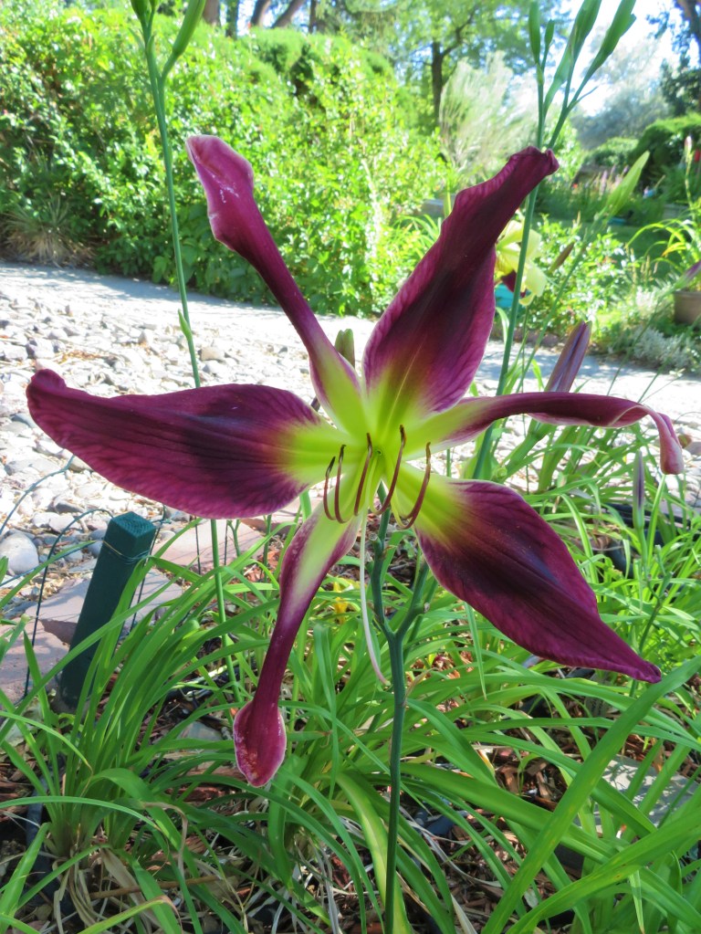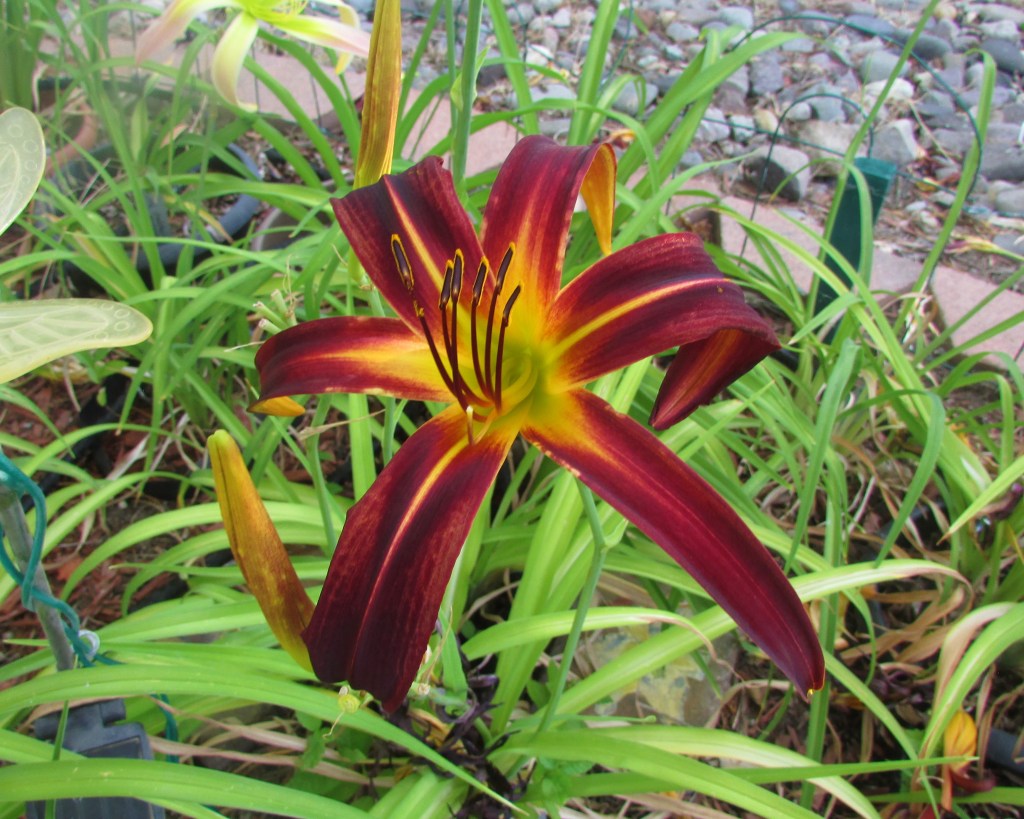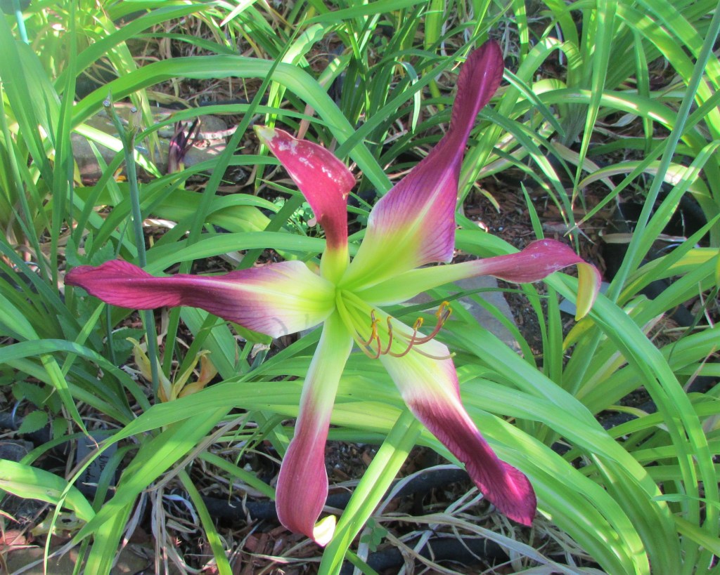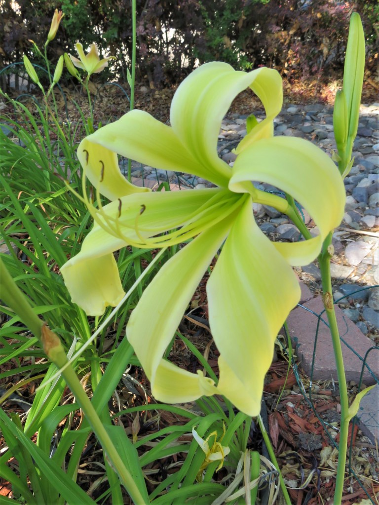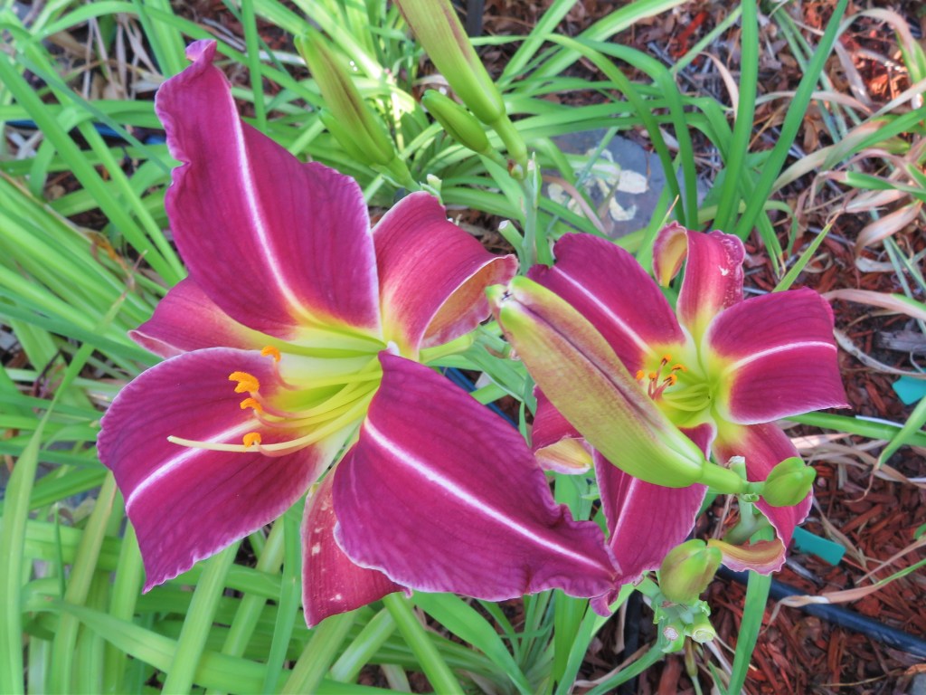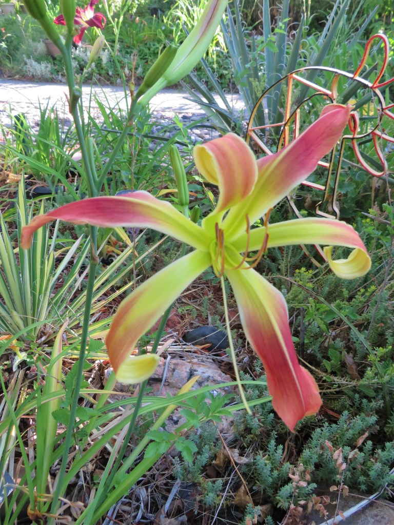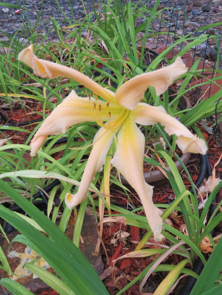 I have had a total of 139 cultivators bloom this season (out of around 190). That is a 73% bloom rate. Last year, we only got to the mid-sixties, so I am thrilled. And, the season isn’t over. In the high desert, 80% is a huge win. I need to fertilize, but without the monsoon moisture and cooler temps, I am waiting until next month. With daylilies in pots, I find applying liquid fertilizer improves bloom rate for the following year because the plant is more resilient.