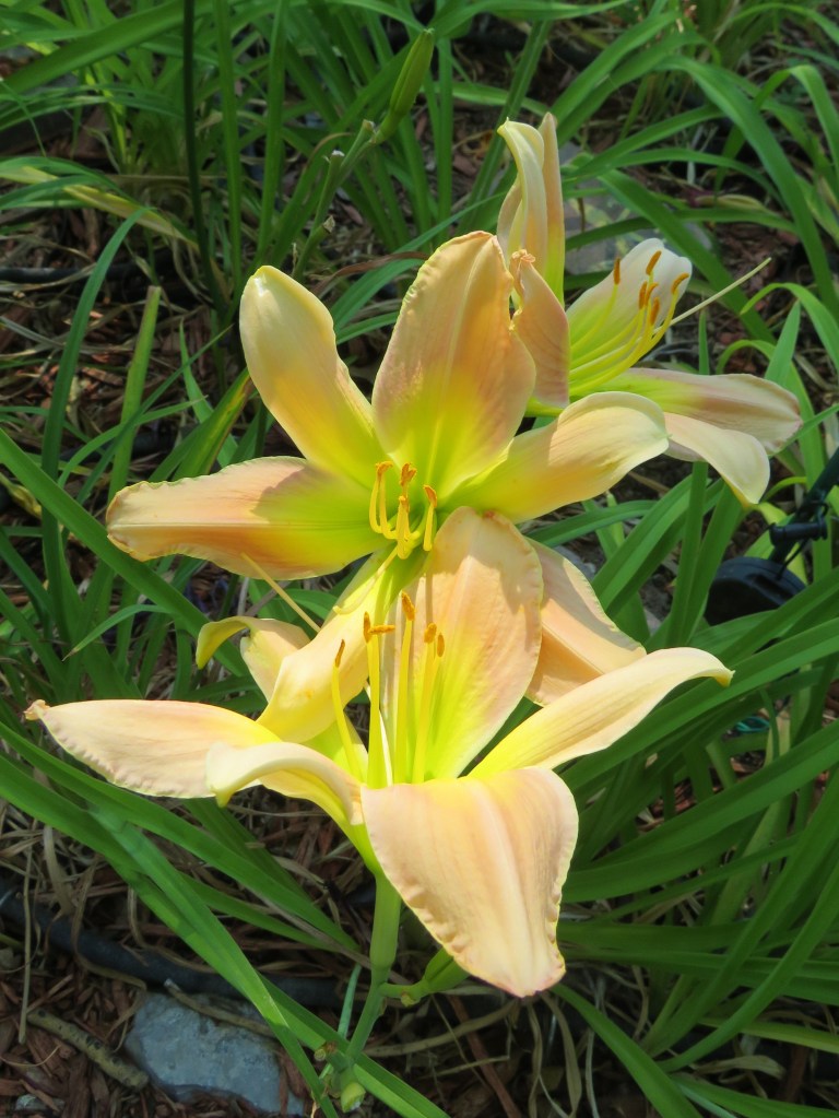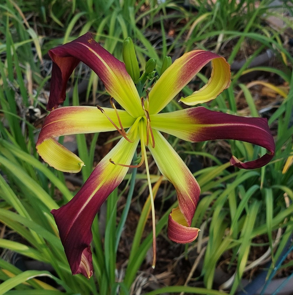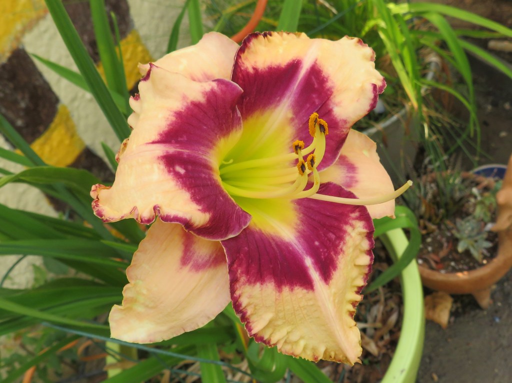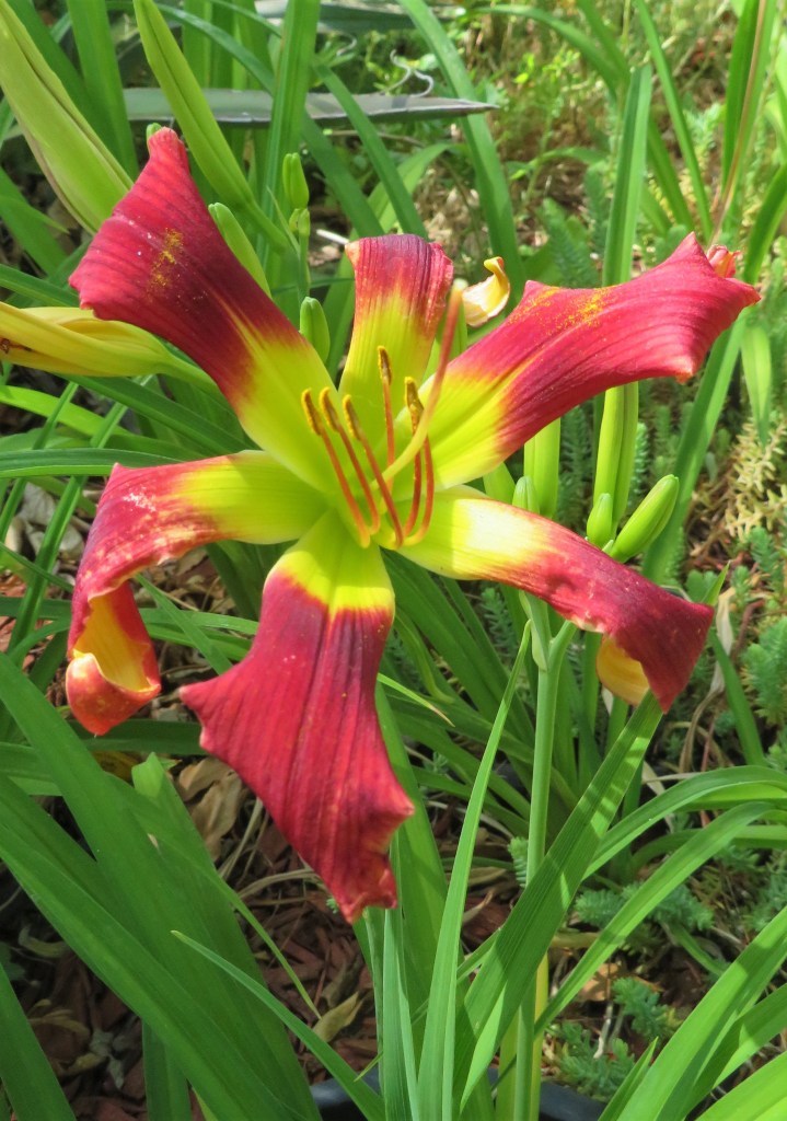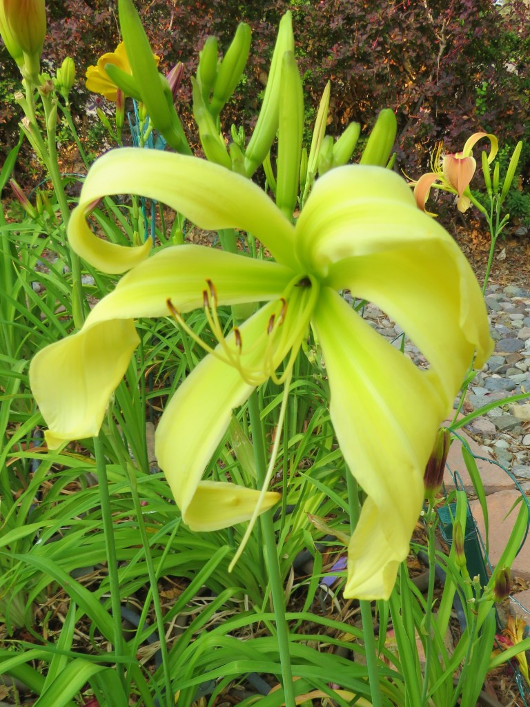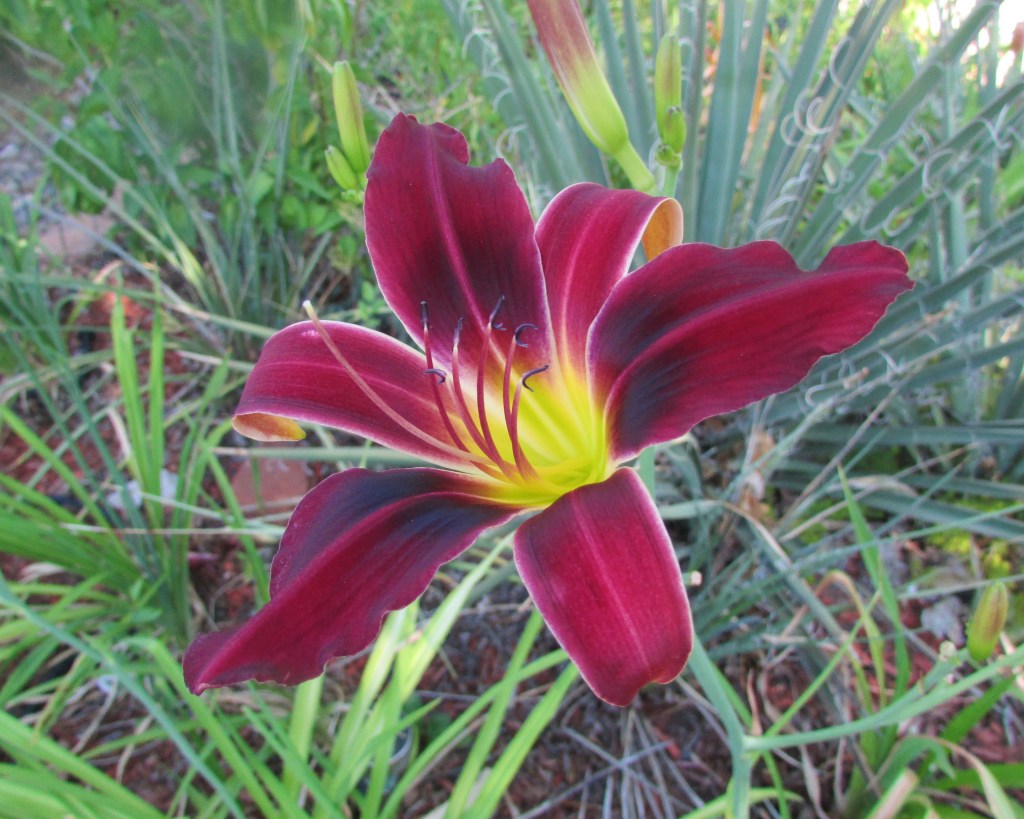 I have had a total of 139 cultivators bloom this season (out of around 190). That is a 73% bloom rate. Last year, we only got to the mid-sixties, so I am thrilled. And, the season isn’t over. In the high desert, 80% is a huge win. I need to fertilize, but without the monsoon moisture and cooler temps, I am waiting until next month. With daylilies in pots, I find applying liquid fertilizer improves bloom rate for the following year because the plant is more resilient.