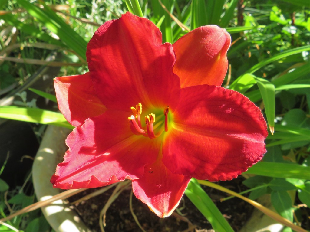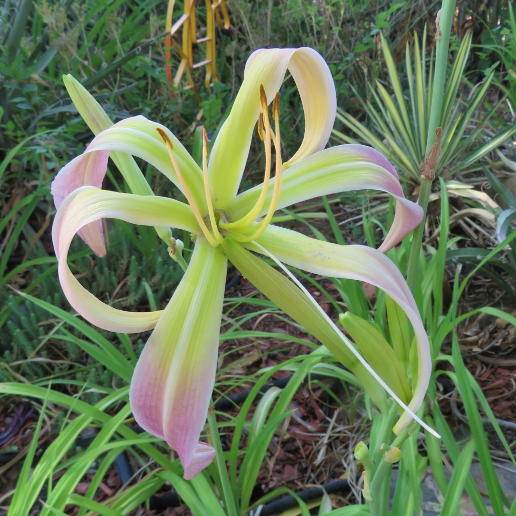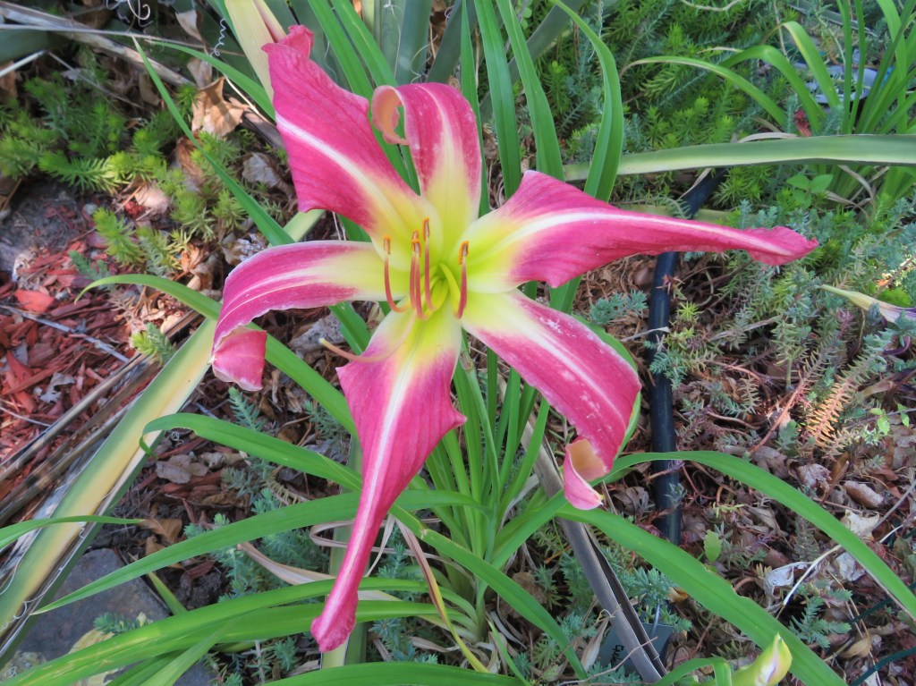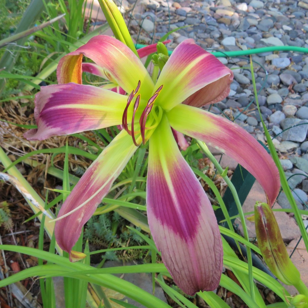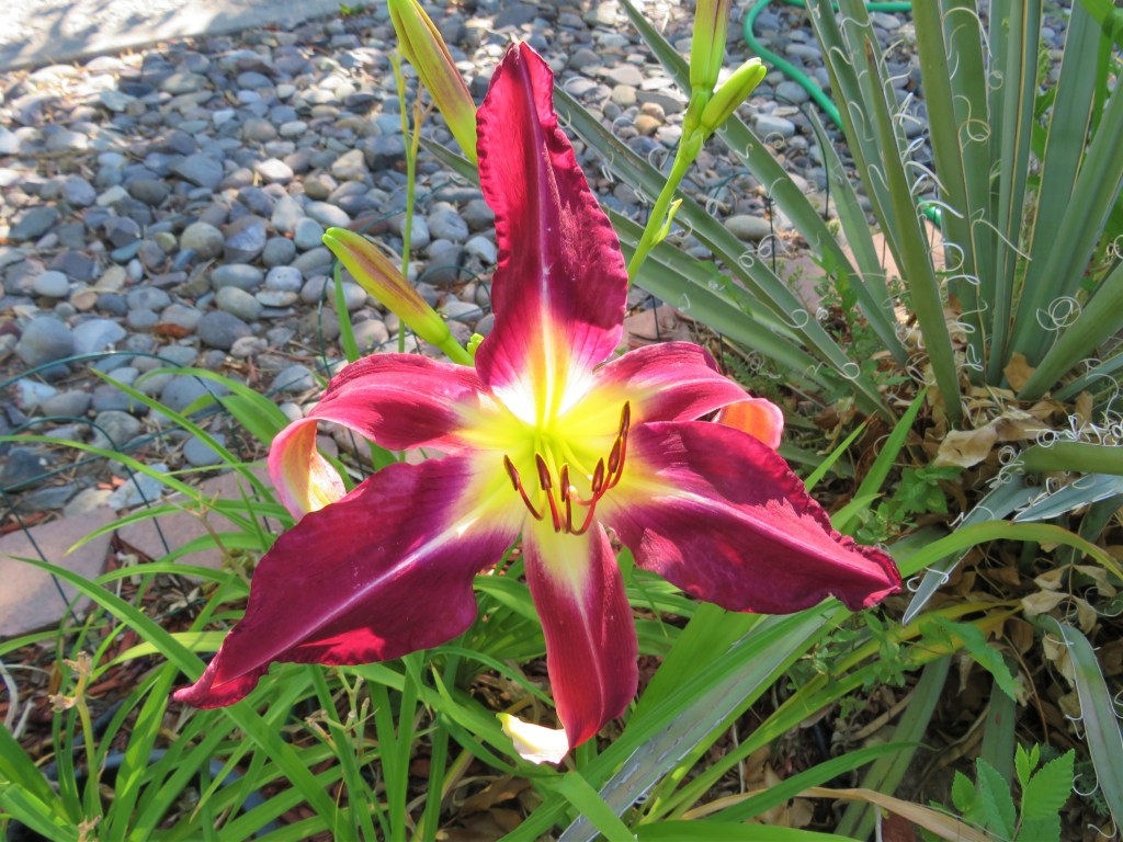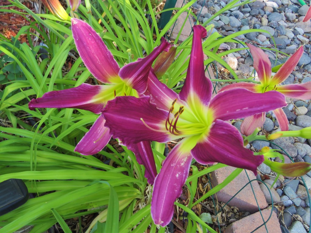 I have had a total of 139 cultivators bloom this season (out of around 190). That is a 73% bloom rate. Last year, we only got to the mid-sixties, so I am thrilled. And, the season isn’t over. In the high desert, 80% is a huge win. I need to fertilize, but without the monsoon moisture and cooler temps, I am waiting until next month. With daylilies in pots, I find applying liquid fertilizer improves bloom rate for the following year because the plant is more resilient.